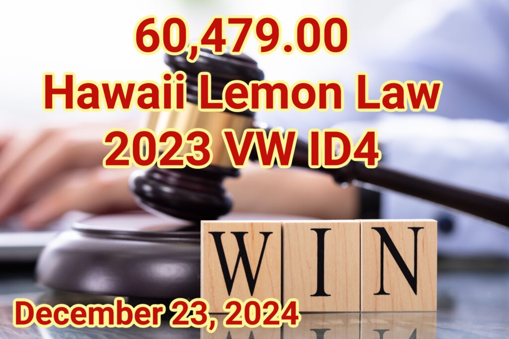 December 23, 2024 – A Ewa Beach, Hawaii resident, who owned a 2023 VW ID4 with an open recall for electrical problems with the dashboard, won a full Hawaii Lemon Law refund of $60,479.00 by the State of Hawaii’s Department of Commerce and Consumer Affairs.